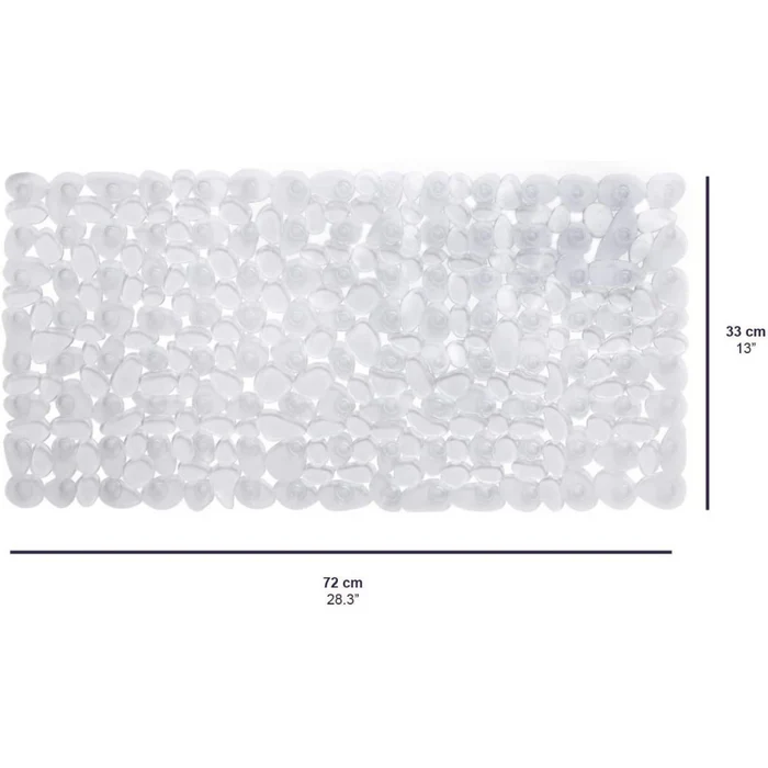 Su tamaño de 72 cm de largo por 33 cm de ancho está especialmente calculado para cubrir una gran parte del fondo de la bañera estándar, creando una zona amplia de apoyo. La cubierta hace uso de materiales de alta calidad que combinan resistencia y flexibilidad, lo que no solo proporciona la estabilidad necesaria, sino que también la convierte en un producto duradero y fácil de limpiar.