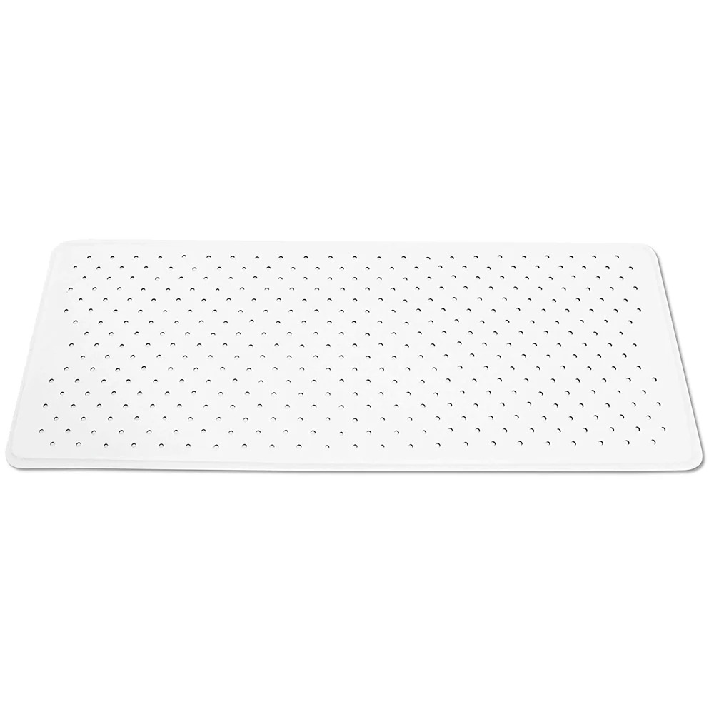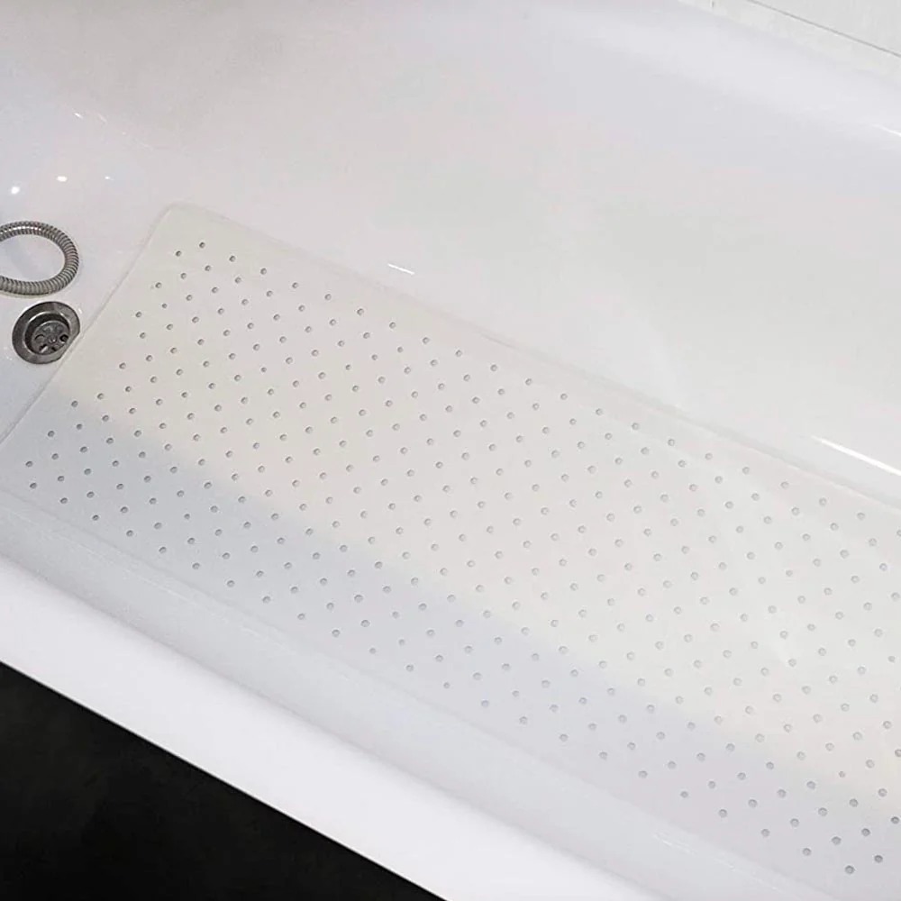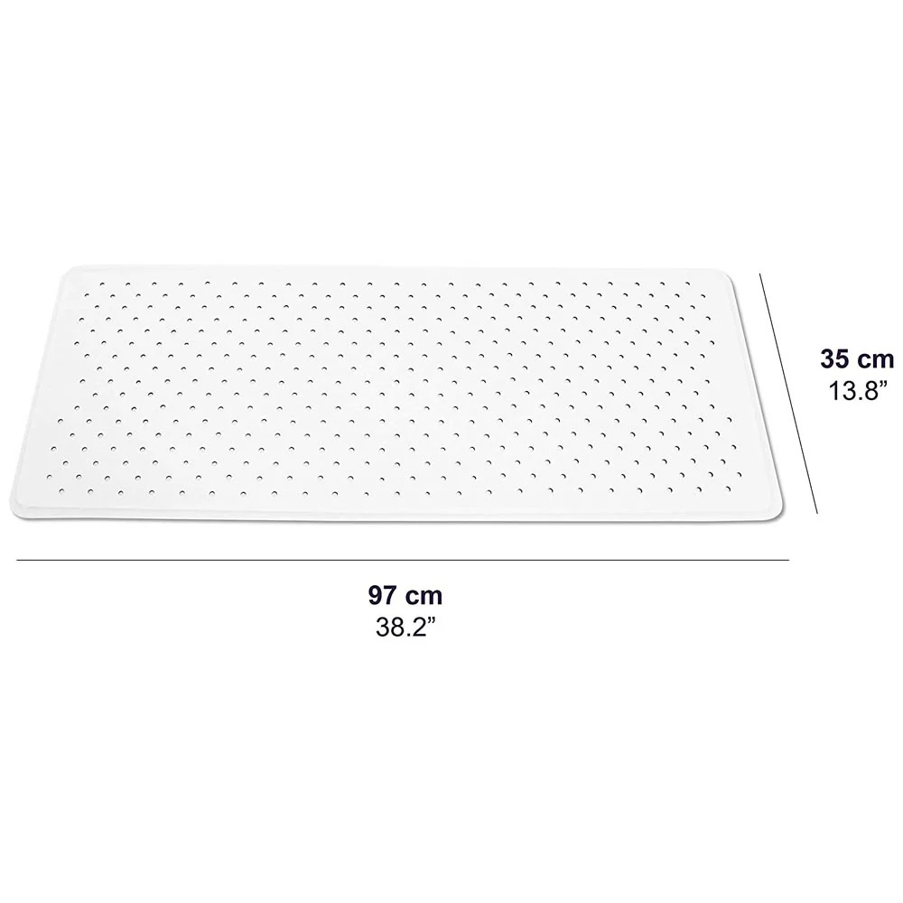 Estas dimensiones permiten al usuario seleccionar la alfombrilla que mejor se adapte al largo de su bañera y al espacio disponible, asegurando que la superficie de apoyo esté siempre cubierta y segura.