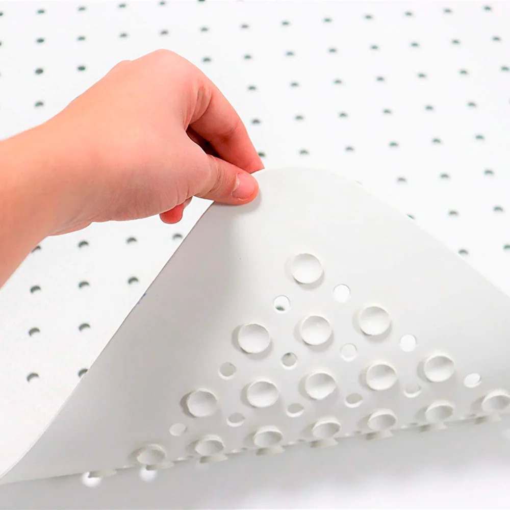 La superficie texturizada combinada con ventosas potentes en la parte inferior asegura que la alfombrilla permanezca fija a la base de la bañera, reduciendo de forma significativa el riesgo de deslizamientos accidentales — un factor de protección clave, sobre todo en situaciones de asistencia o apoyo al baño de personas con menor estabilidad.