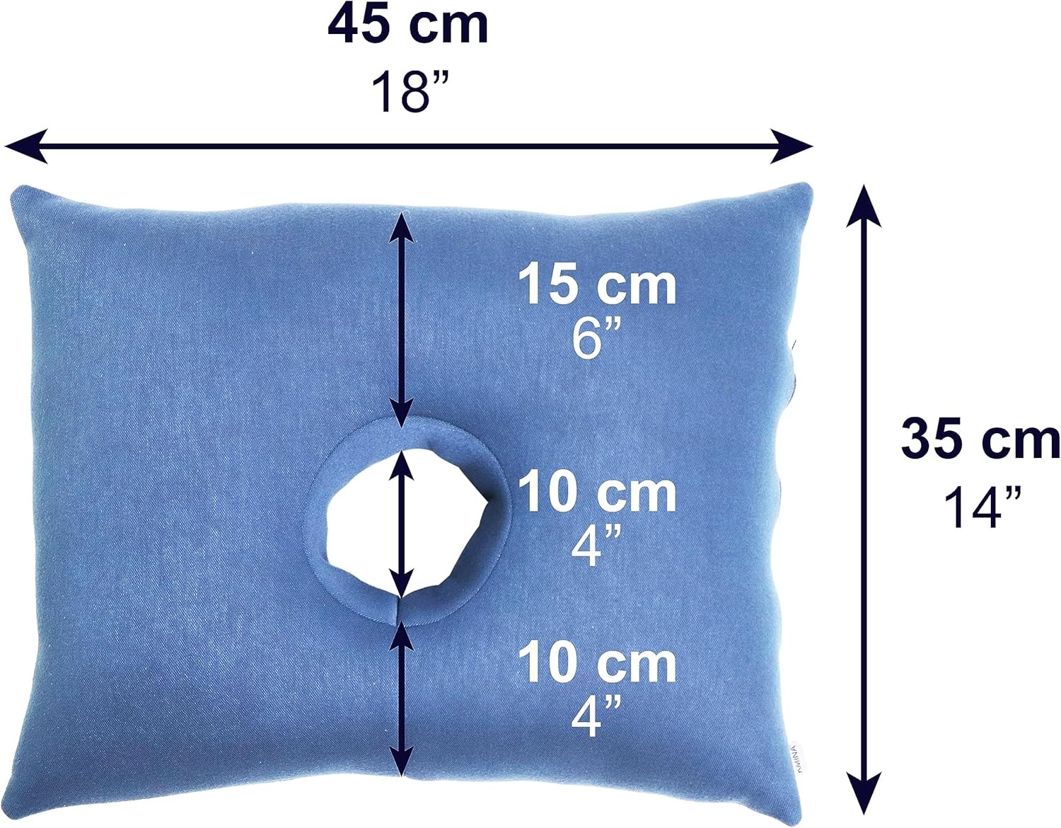 La almohada para la oreja es ideal para quienes padecen dolor auricular, otitis, piercings recientes, intervenciones quirúrgicas en la zona del oído o simplemente buscan un descanso más confortable sin presión directa. Gracias a su diseño específico con hueco central, permite apoyar la cabeza sin que la oreja entre en contacto con la superficie, favoreciendo el alivio del dolor articular y muscular en la zona cervical y auricular.
