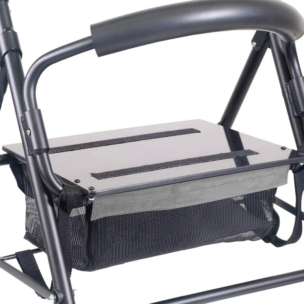 Este andador de cuatro ruedas incorpora un cómodo asiento con respaldo y un sistema de freno por presión que actúa automáticamente cuando el peso del usuario se apoya sobre el manillar. Está fabricado en aluminio ligero resistente, lo que facilita su transporte, maniobrabilidad y almacenamiento.