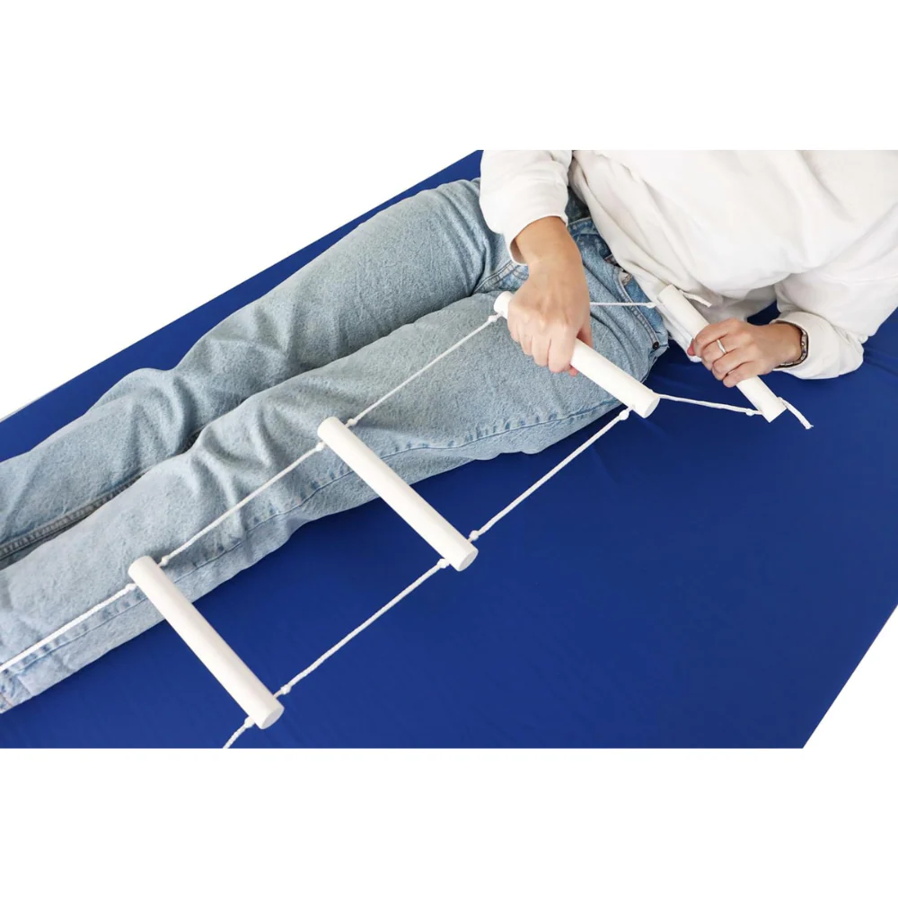 El PEPE consiste en un sistema de cuerda o riel que se fija a las patas de la cama y permite al usuario incorporarse gradualmente hasta quedar en posición sentada con más seguridad y menos esfuerzo. Este tipo de dispositivo es ideal para quienes presentan debilidad muscular, problemas de equilibrio o requieren apoyo adicional para iniciar el movimiento de sentado desde la cama.