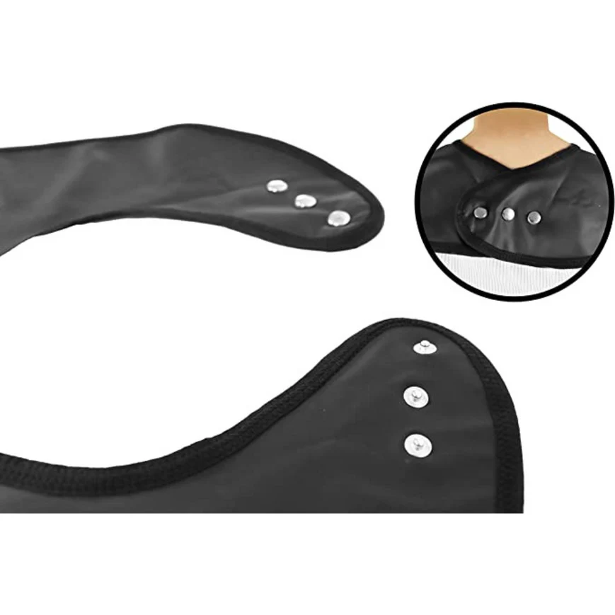 Además, los tres niveles de ajuste mediante botones de presión facilitan un ajuste personalizado y seguro, permitiendo que el babero se use en diferentes contextos y con distintas anatomías. Su superficie amplia protege eficazmente la ropa y objetos cercanos, reduciendo el tiempo de limpieza y aportando mayor autonomía y tranquilidad al usuario y al cuidador.