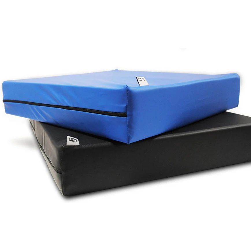 El Cojín Antiescaras P40002 cuenta con unas dimensiones de aproximadamente 42 cm x 42 cm x 8 cm (largo x ancho x grosor) con un grosor total de 8 cm compuesto por una primera capa de espuma de poliuretano de alta densidad y una segunda capa de espuma viscoelástica de confort. Esta configuración permite maximizar la superficie de contacto y distribuir el peso de manera equilibrada, reduciendo eficazmente la presión sobre puntos críticos del cuerpo que suelen ser propensos a la formación de escaras.