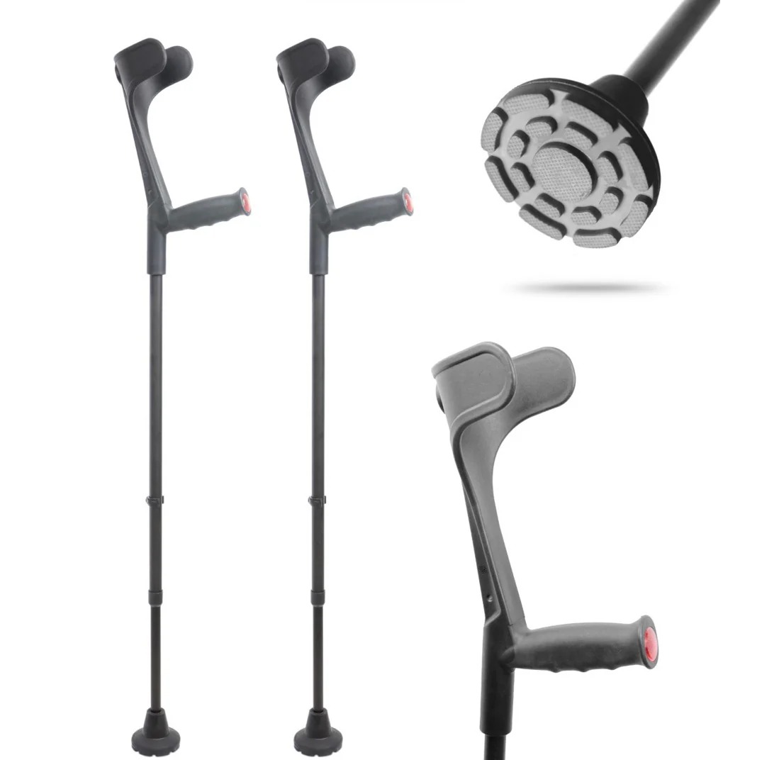 El uso de empuñaduras acolchadas minimiza el riesgo de dolor articular en manos y muñecas, y las conteras anchas ofrecen un soporte más estable en todo tipo de superficies, aumentando así la seguridad en circulación. Además, al ser regulables, permiten un ajuste óptimo, lo que contribuye a prevenir posturas forzadas o incorrectas — clave para la salud músculo‑esquelética.