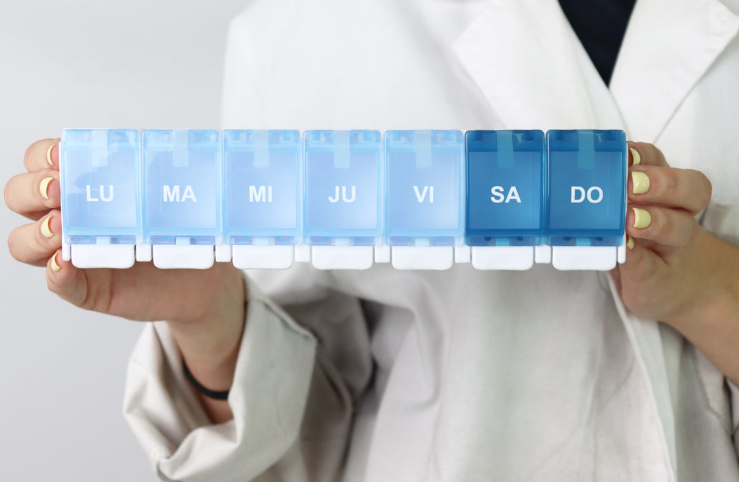 Organiza tu medicación semanal de forma sencilla con el Pastillero Semanal 1 Toma . Ideal para tratamientos con una sola dosis diaria, este pastillero ergonómico y compacto te permite planificar tus medicamentos para los 7 días de la semana con soporte ergonómico y diseño ultraligero. Una solución práctica dentro de nuestra ortopedia online con envío rápido 24/48h.
