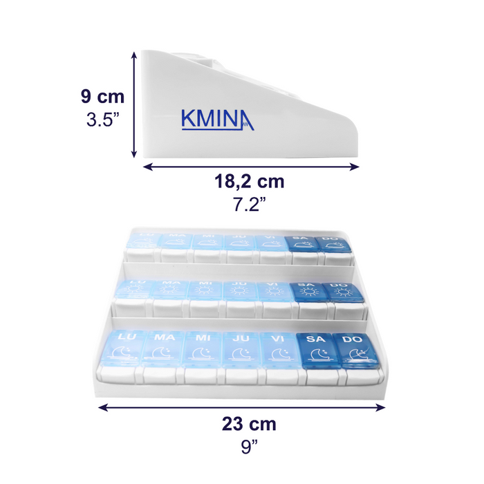 Este diseño facilita que puedas planificar tu tratamiento semanal de forma rápida, intuitiva y eficaz, con una vista clara de cada toma diaria sin necesidad de abrir múltiples envases o llevar notas adicionales. Además, su tamaño compacto permite que puedas llevarlo contigo en viajes, actividades del día a día o cuando estás fuera de casa.