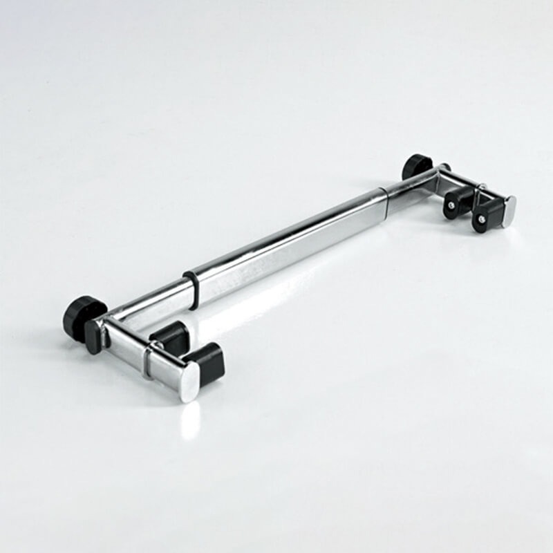 Accesorios compatibles con el Sherpa 988: barras telescópicas ajustables (28–38 cm y 46–60 cm) y plataforma para silla de ruedas 300. Diseñados para aumentar la comodidad, estabilidad y versatilidad del equipo, estos accesorios mejoran la movilidad asistida y ofrecen un ajuste personalizado para cada usuario.