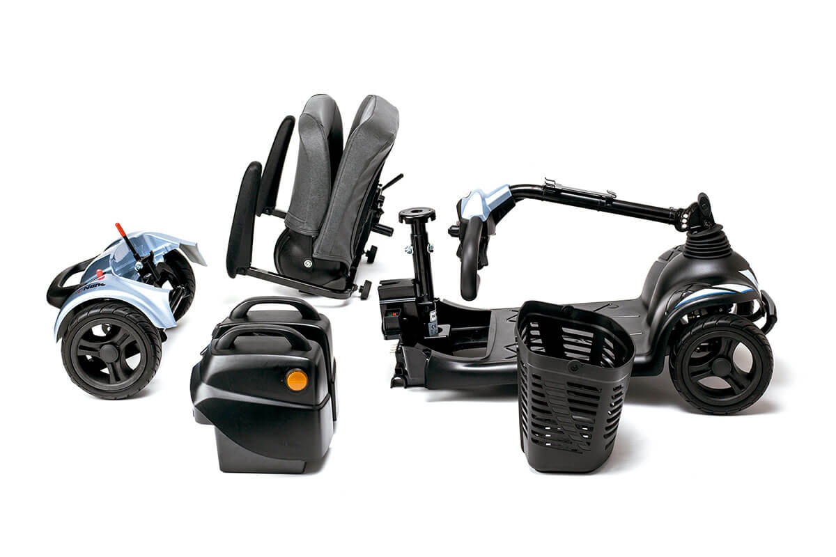 Una de sus grandes ventajas es que el I‑Nano se puede desmontar en varias piezas modulares (por ejemplo en cuatro partes según la ficha técnica) lo que permite un transporte más sencillo, alojarlo en el maletero de un coche o guardarlo en espacios más reducidos. Asimismo, sus baterías son fácilmente extraíbles para facilitar la recarga fuera del vehículo o en casa.