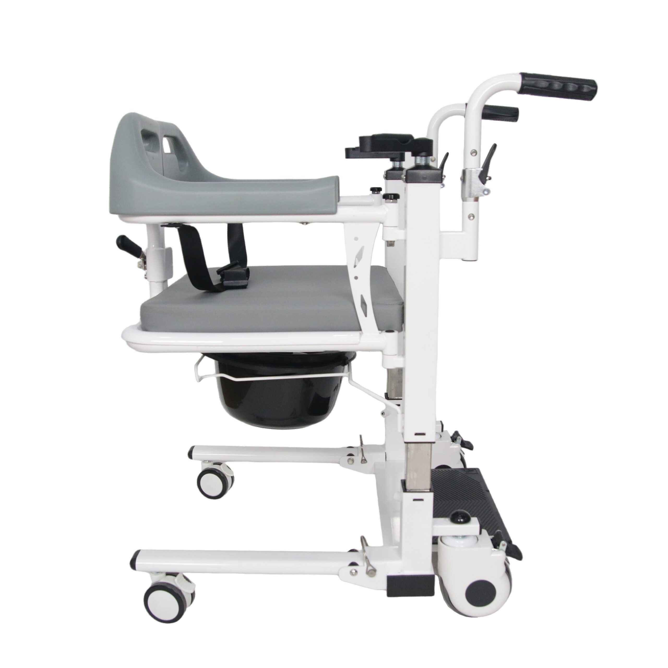 La Easy Move Waterproof es una silla de transferencia y WC con resistencia al agua, ideal para traslado y aseo en ambientes húmedos. Cuenta con apertura frontal 180°, doble sistema de bloqueo, altura ajustable y asiento acolchado para máximo confort en personas con movilidad reducida.