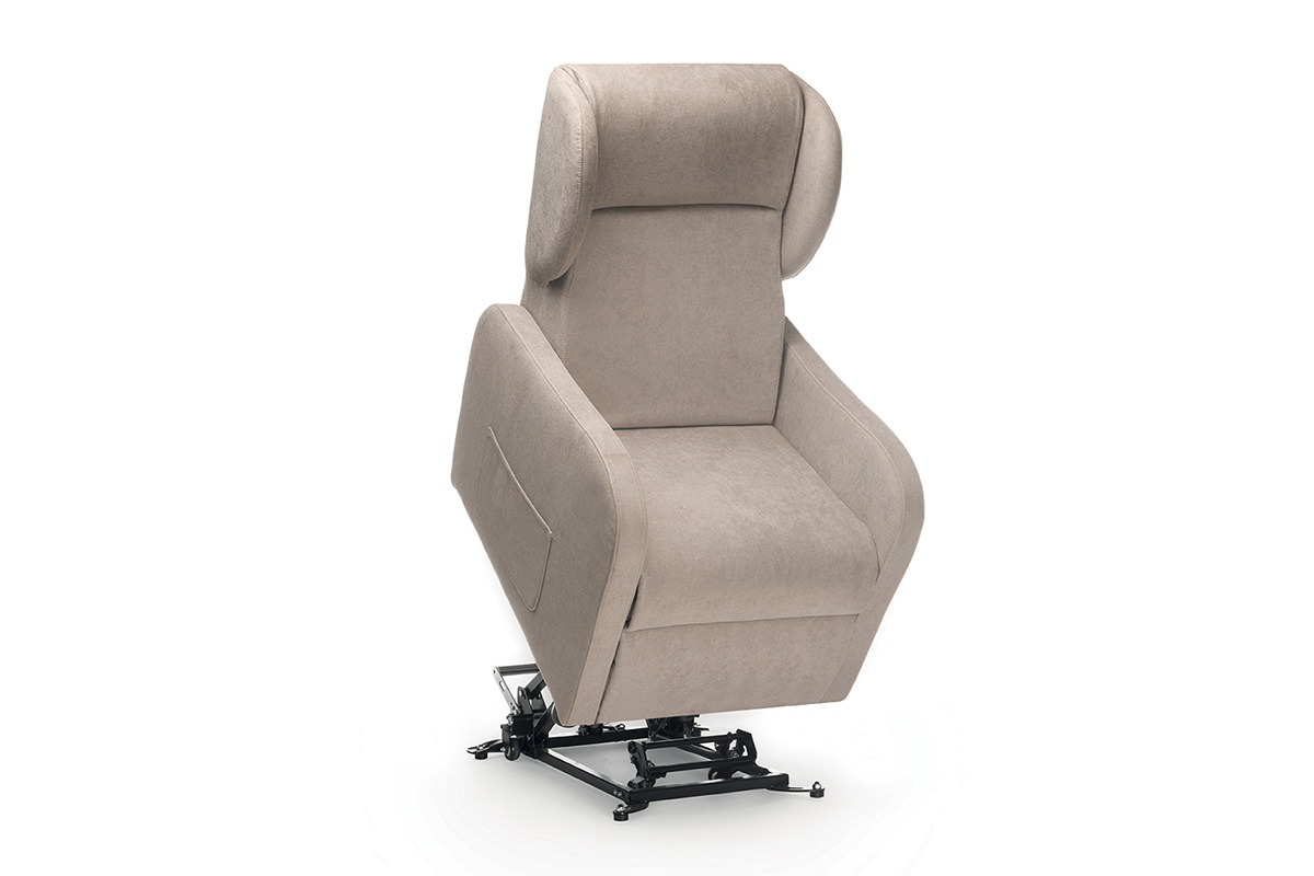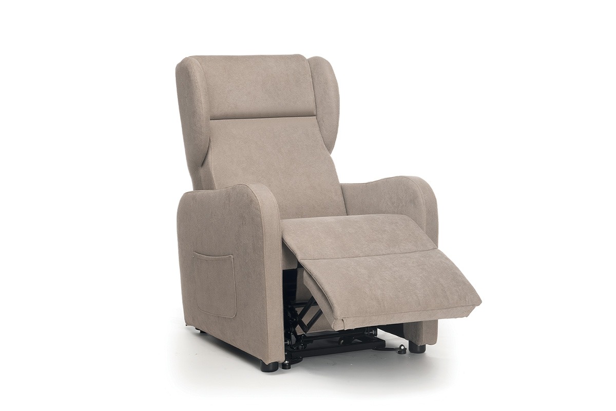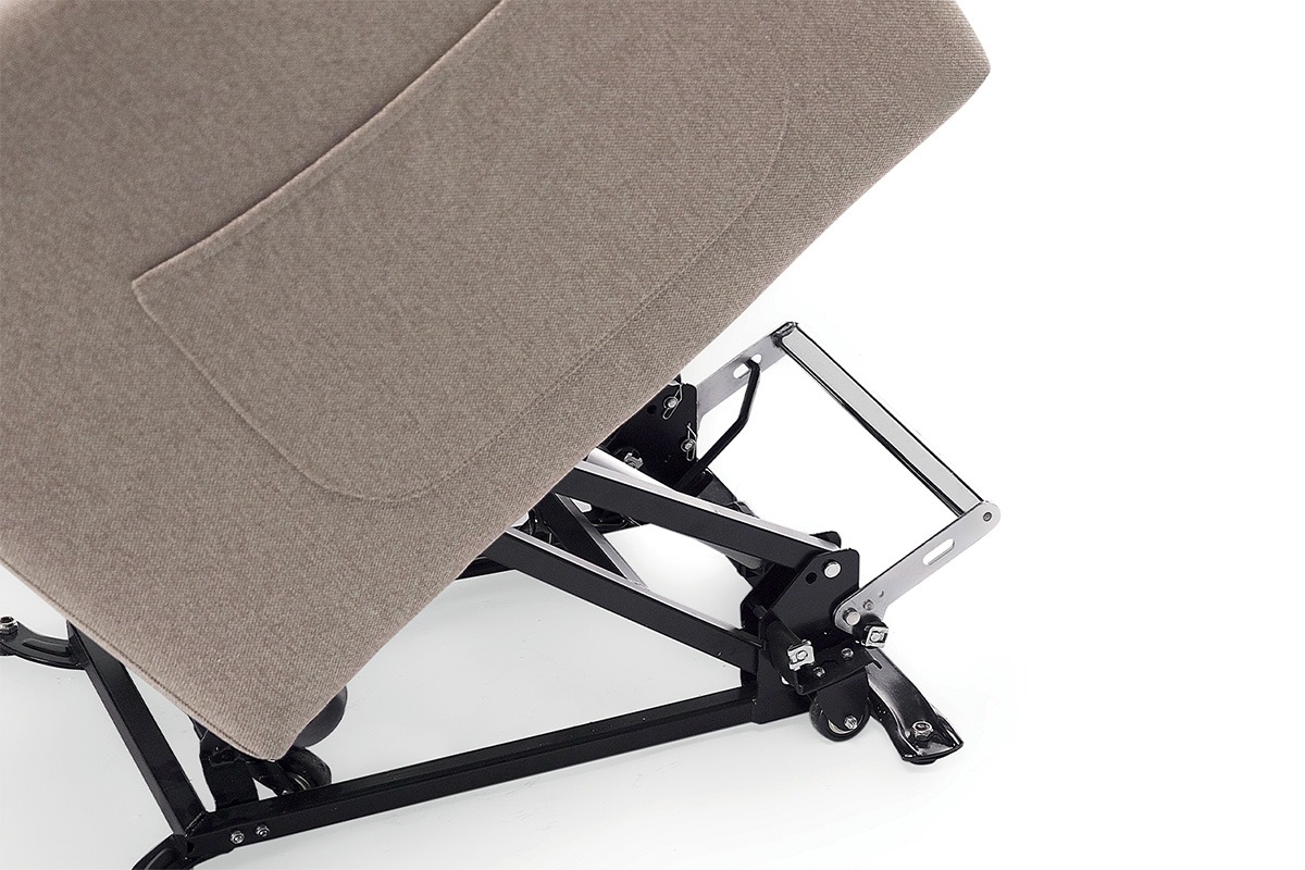 El sillón incorpora un sistema eléctrico de movilidad asistida que permite al usuario incorporarse sin esfuerzo. Con solo pulsar el mando ergonómico incluido, el sillón se inclina progresivamente hacia adelante ayudando a ponerse de pie de forma estable y segura.
