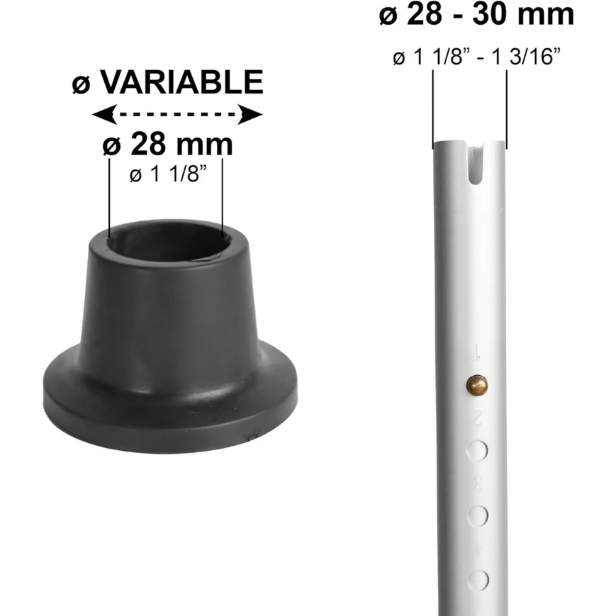 Pack de 4 tacos de goma antideslizantes para sillas de ducha, compatibles con tubos de 28 a 30 mm. Fabricados en caucho 100% natural, ofrecen estabilidad y seguridad en superficies mojadas. Imprescindibles como ayuda técnica en higiene para personas con movilidad reducida. Fácil instalación y envío rápido 24/48h.